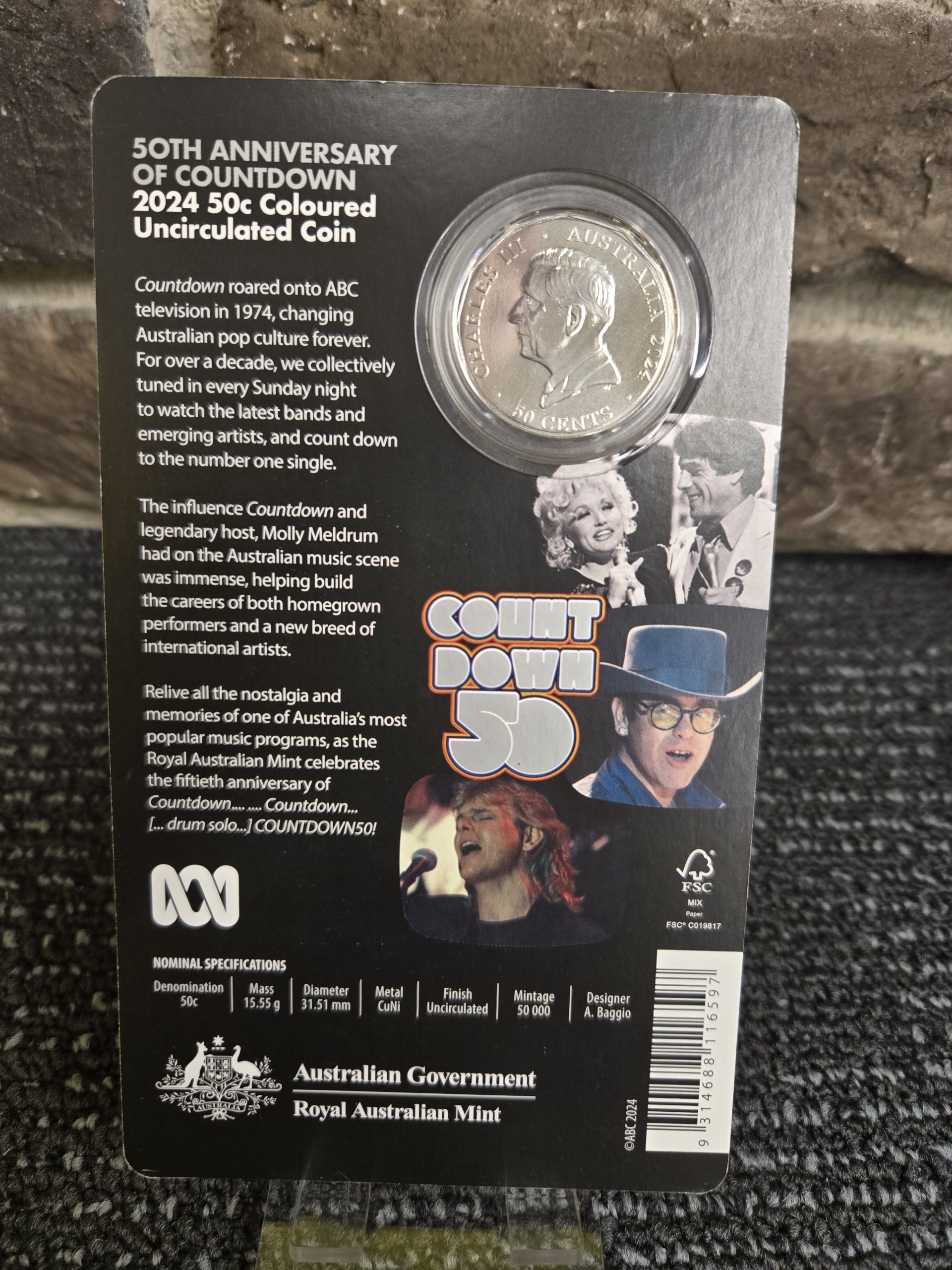 2024 50C 50TH ANNIVERSARY OF COUNTDOWN COLOURED COIN