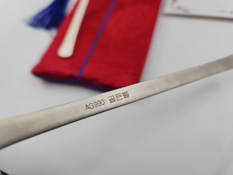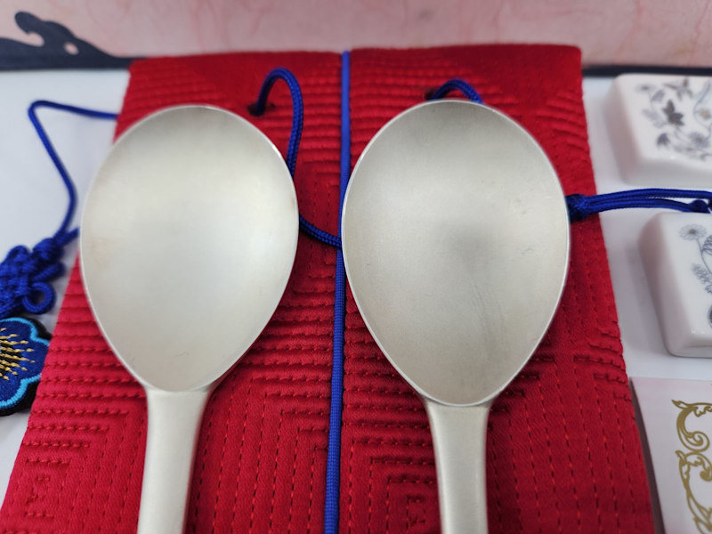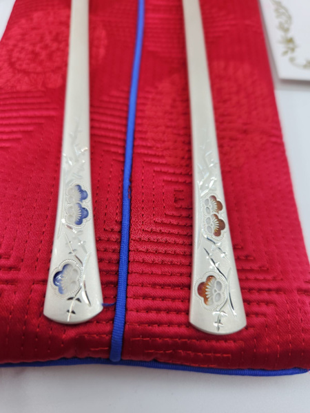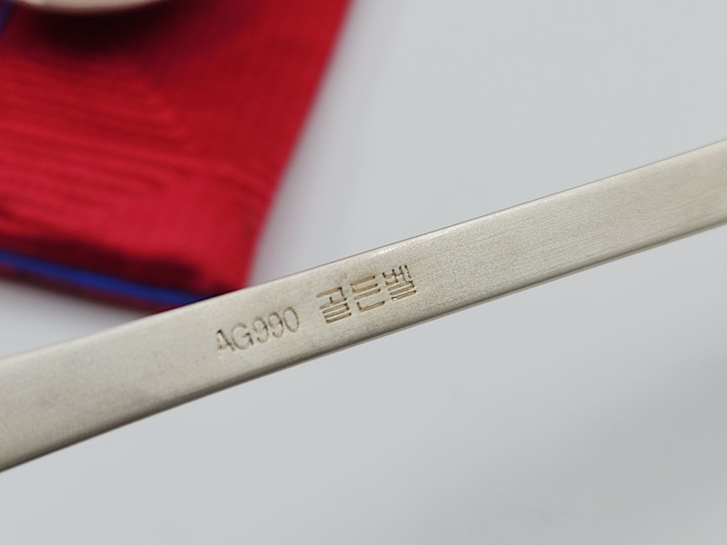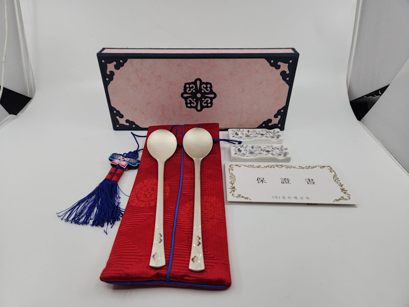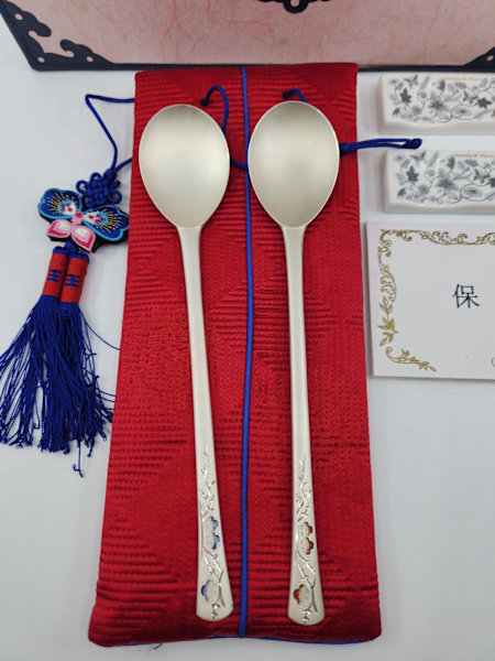 Beautiful set of two 99% silver Korean plum blossom design spoons from 2007.