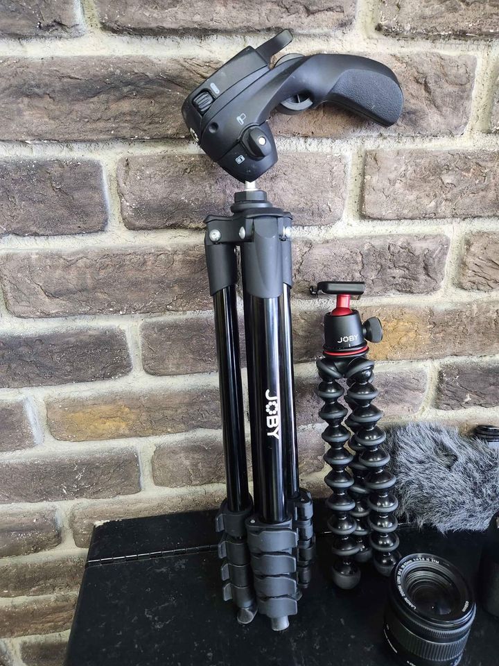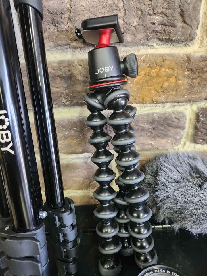 Joby Tripod Model: JB01629-BWW (missing clip for camera to lock onto). x2 batteries Charger Microphone Tripod level