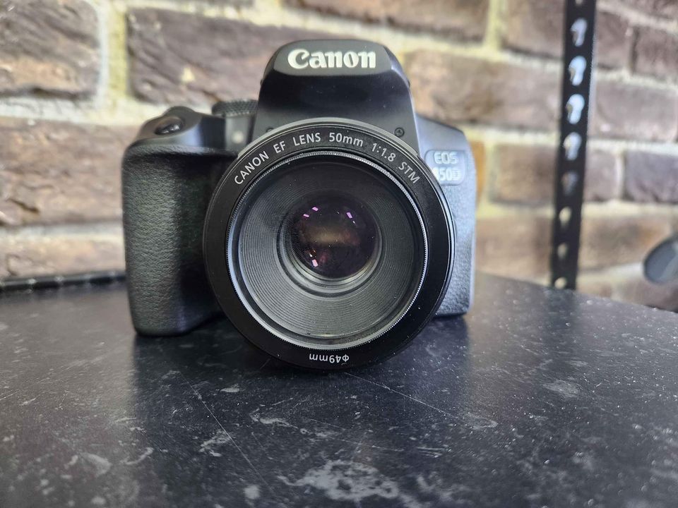 Model: EOS-850D SHUTTER COUNT UNKNOWN. Camera itself is in great overall condition. Comes with: 50mm 1:1.8 Lens.