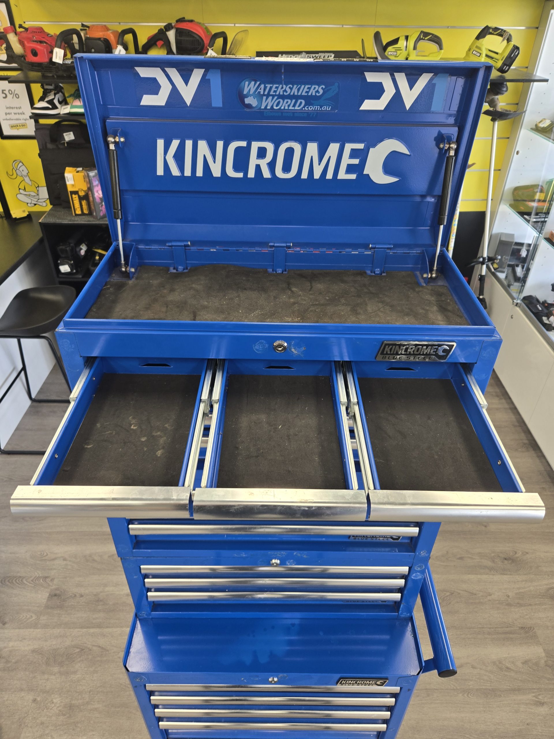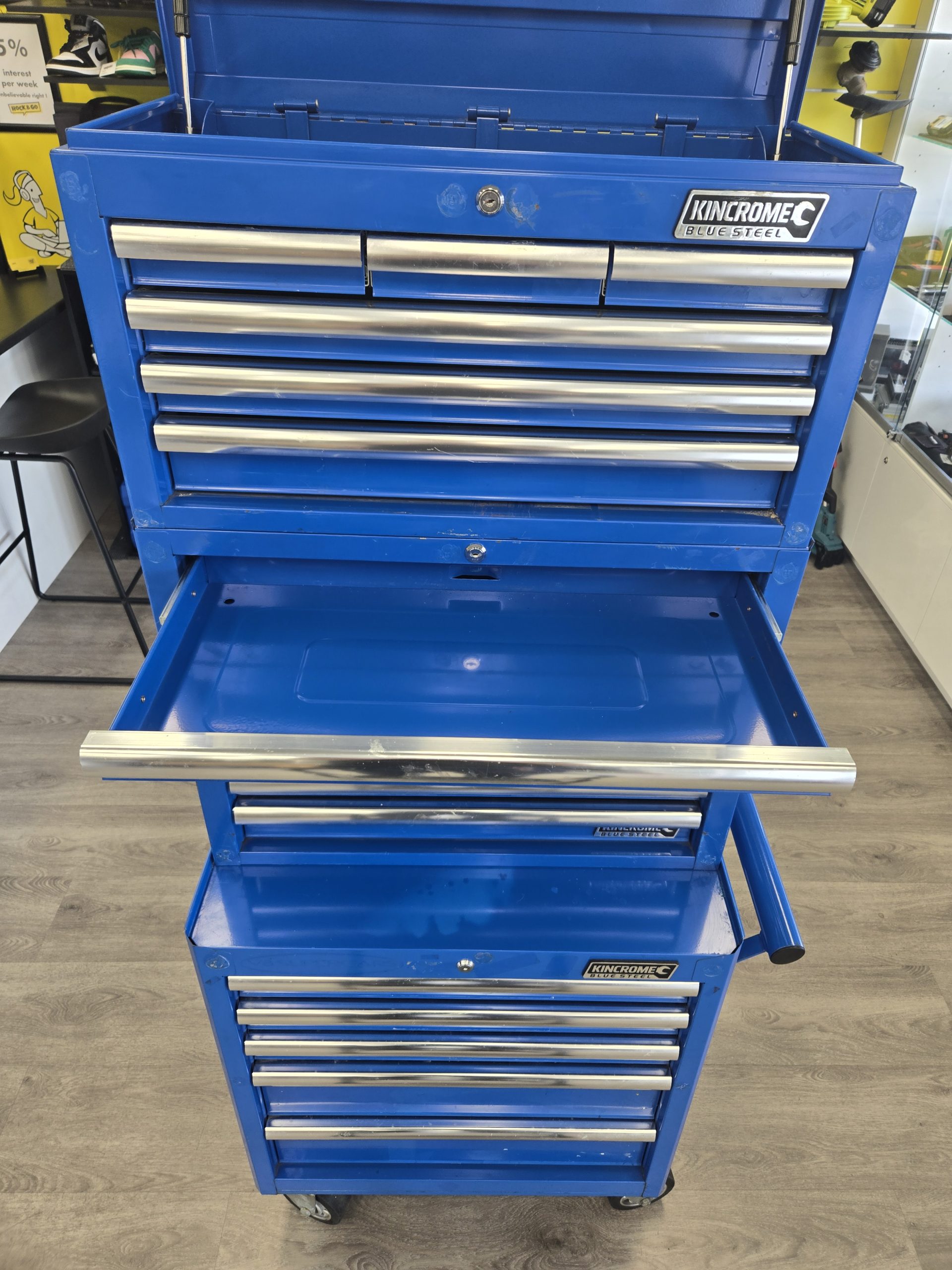 Kincrome Blue Steel 5 Drawer Trolley and 3 Tier Toolbox – Lg28232