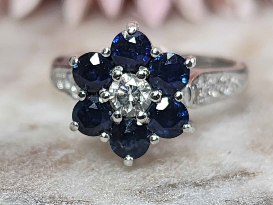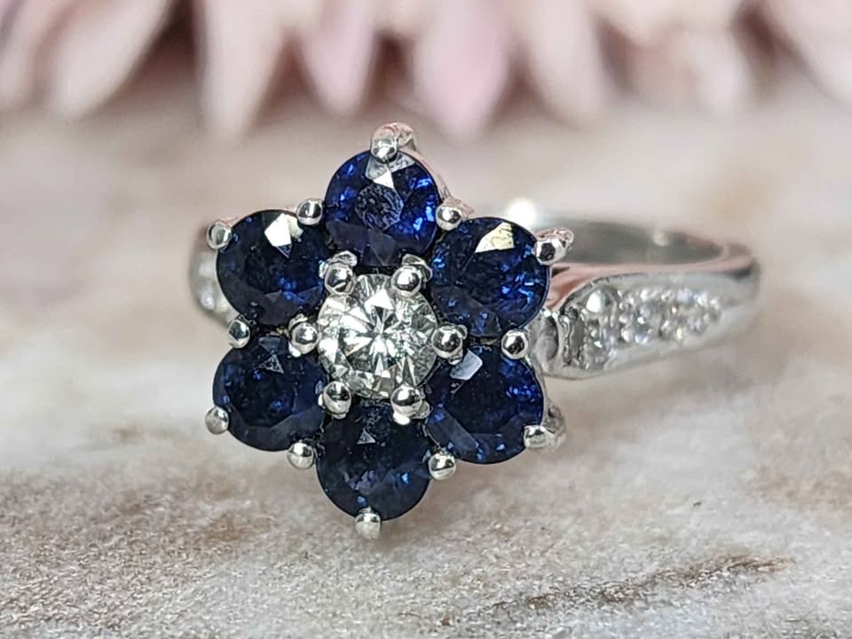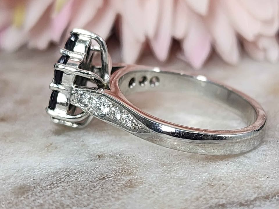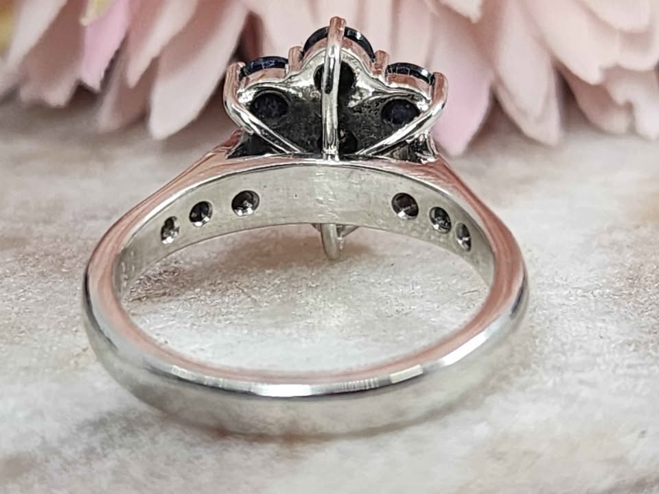 Genuine, Pre-Loved Ladies 18ct White Gold Blue Stone and Diamond Ring (5.2gms)
