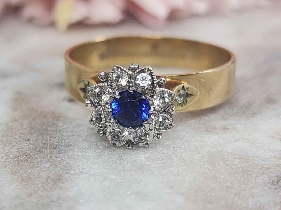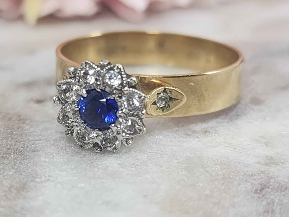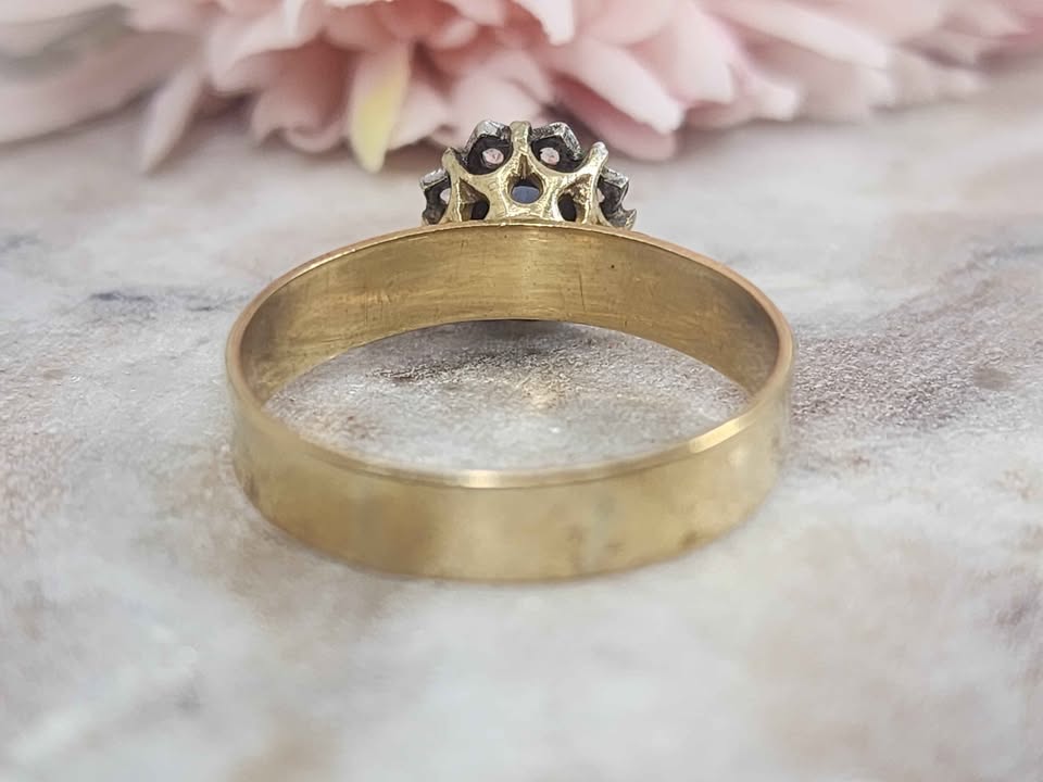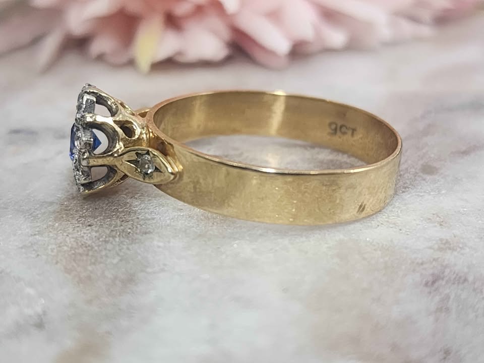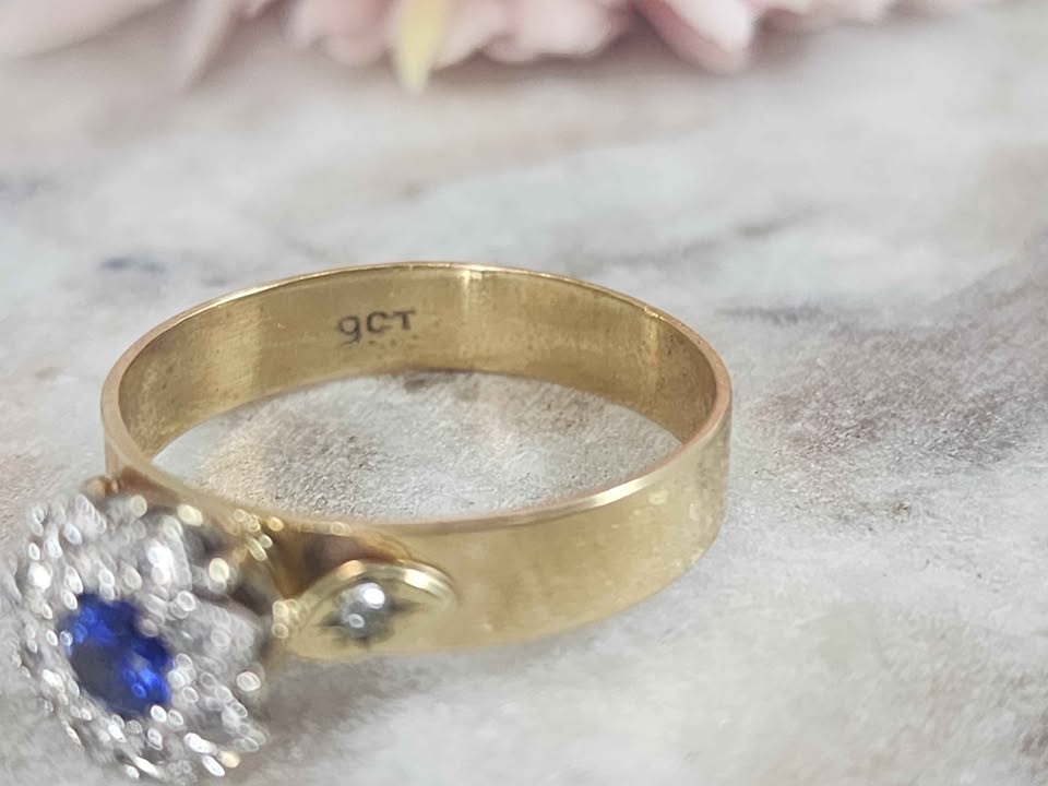 Genuine, Pre-Loved Ladies 9ct Yellow Gold Blue Stone Diamond Ring (3.3gms)