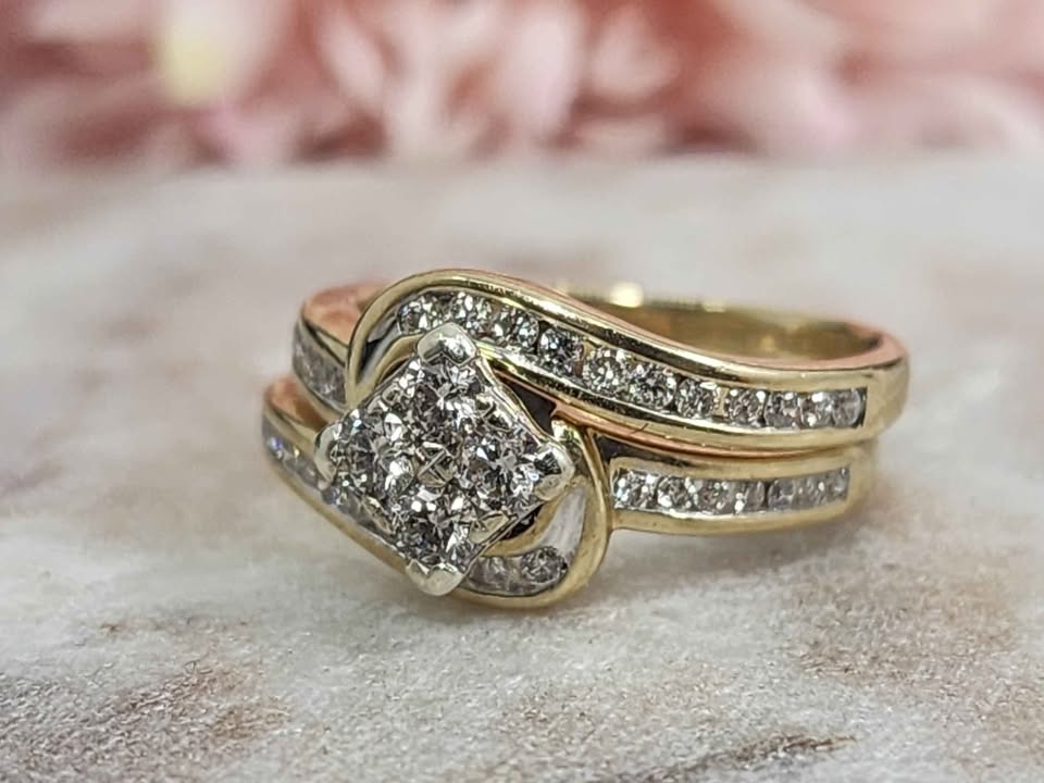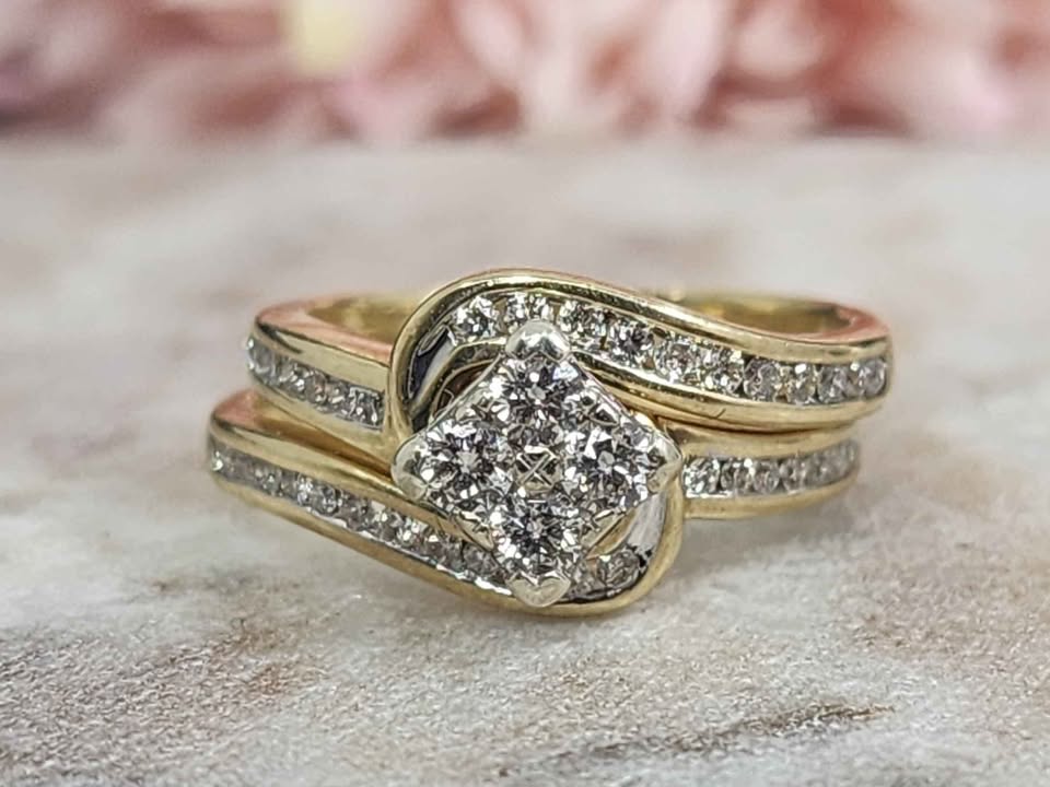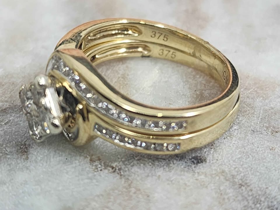 Genuine, Pre-Loved Ladies 9ct Yellow Gold Diamond Ring Set (2.6gms)