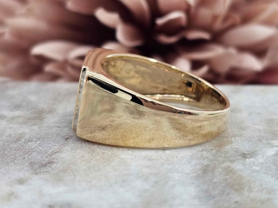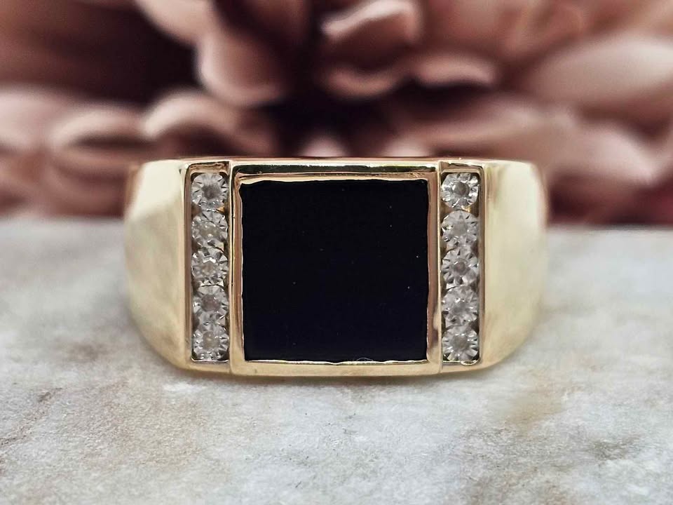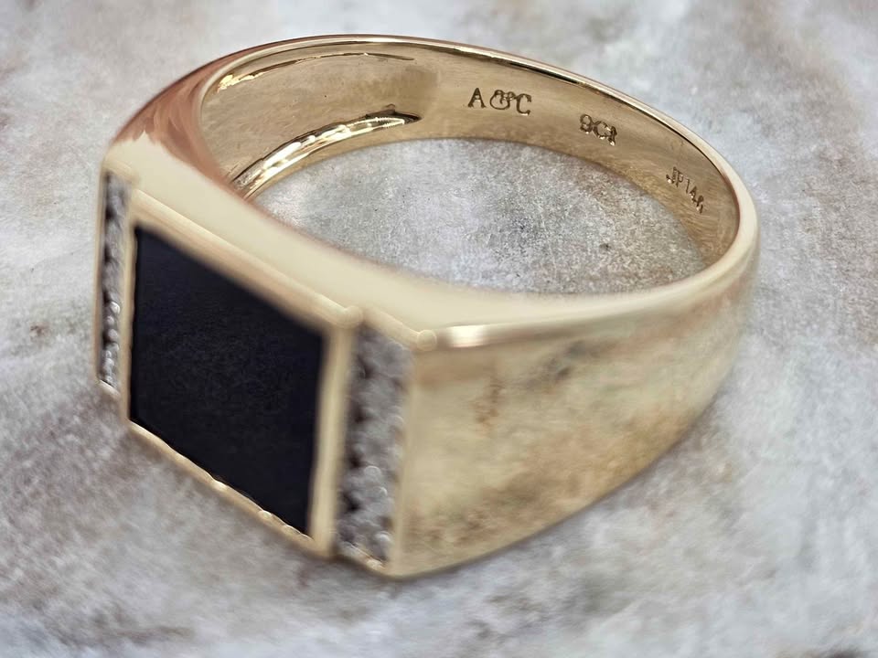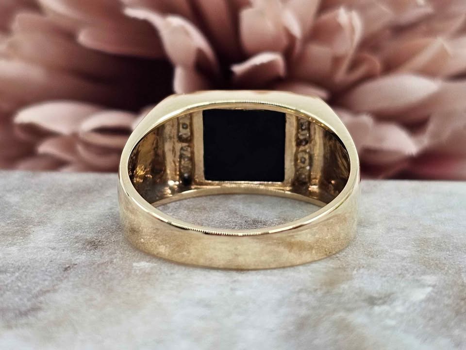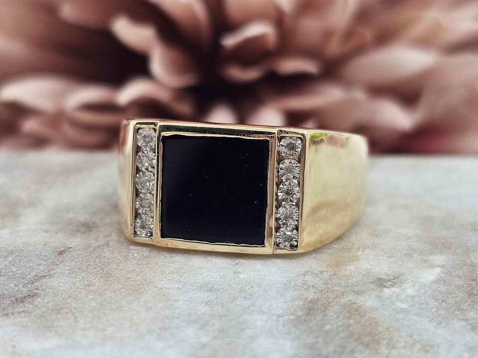 Genuine, Pre-Loved 9CT Yellow Black Stone Illusion Diamond Ring (4.9gm)