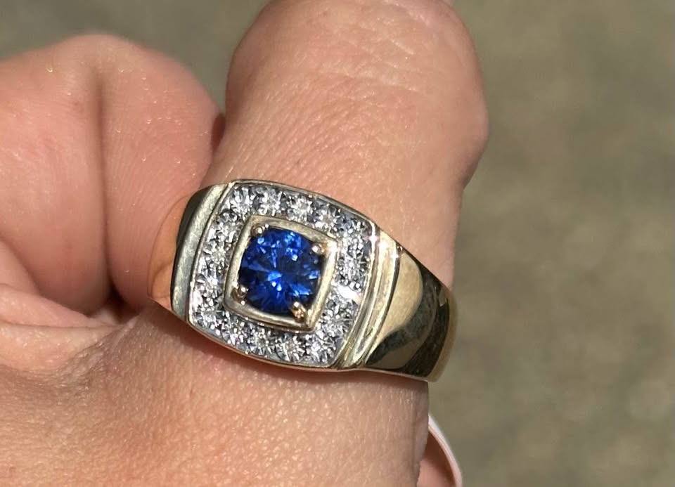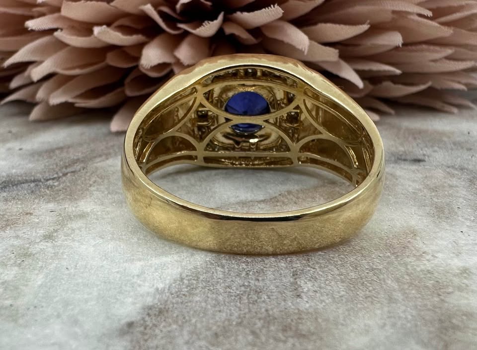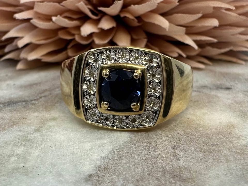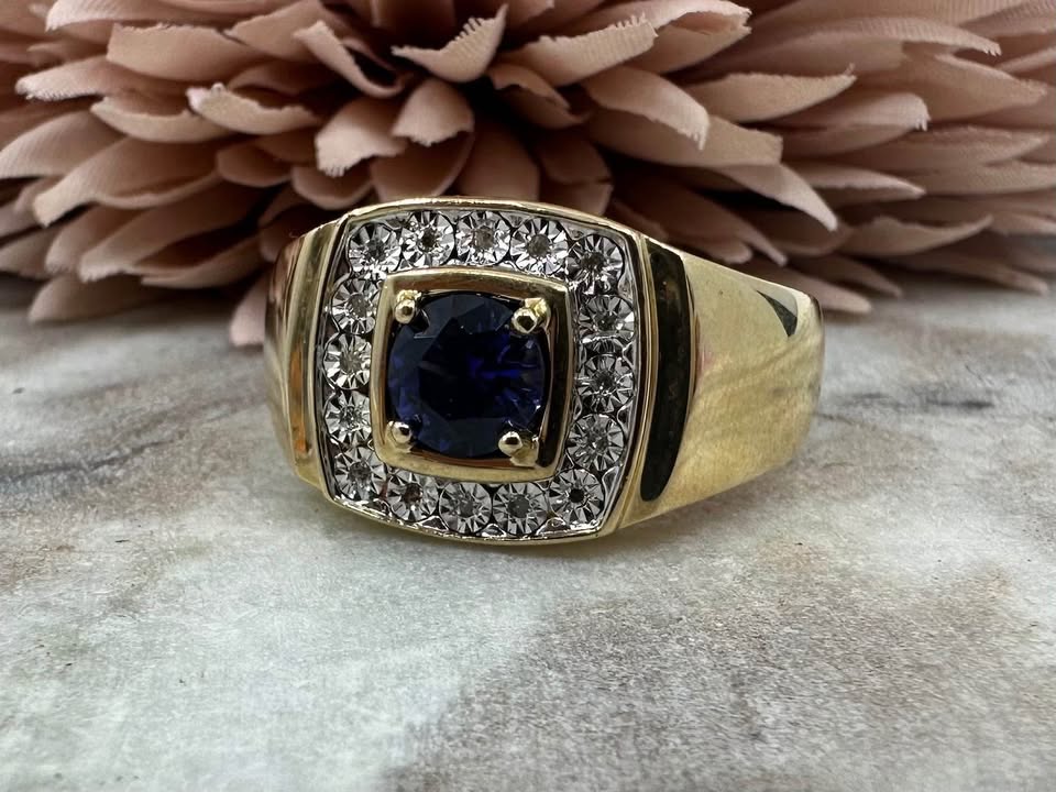 Men’s 9ct Yellow Gold Blue Stone and Diamond Ring (6.6gms) – Hl25712