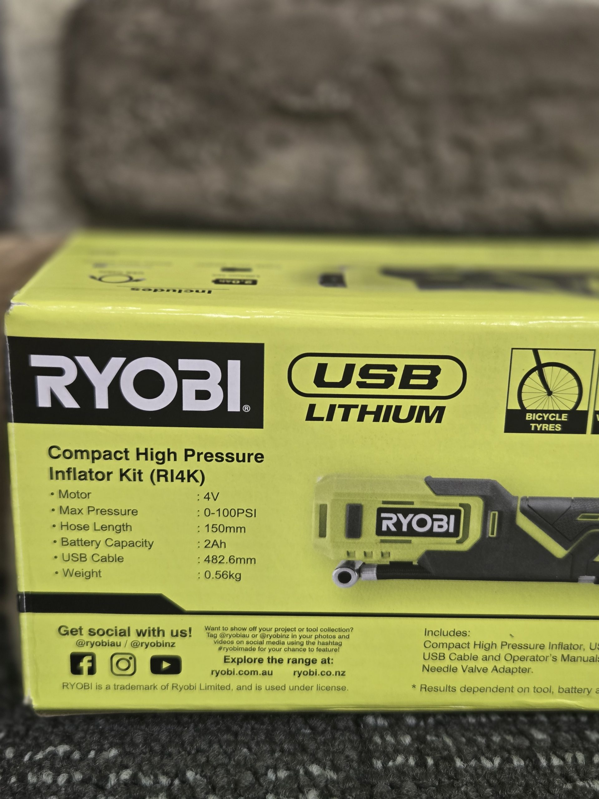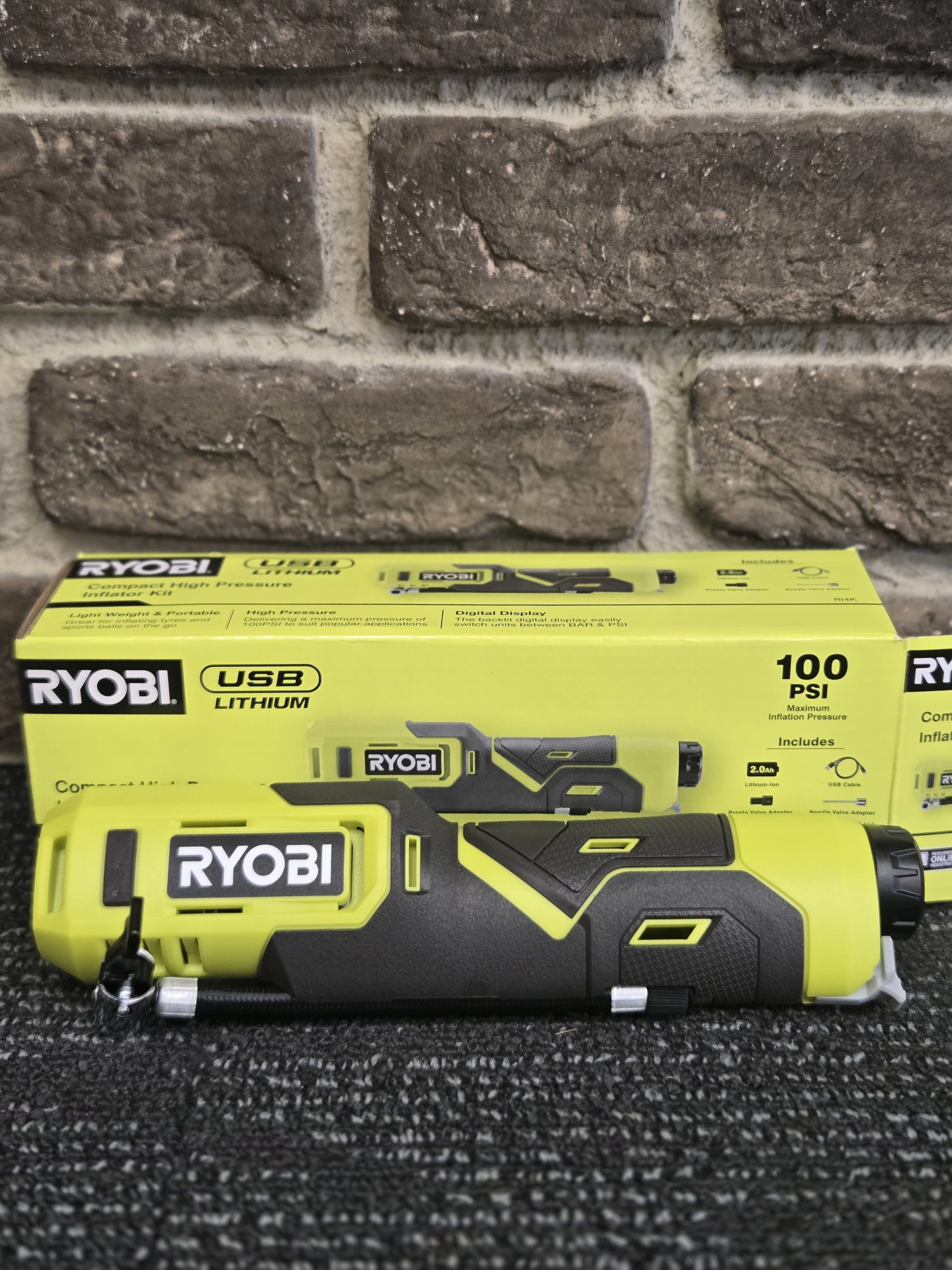 💨 Ryobi RI4K Cordless Inflator – With Battery & USB Charger