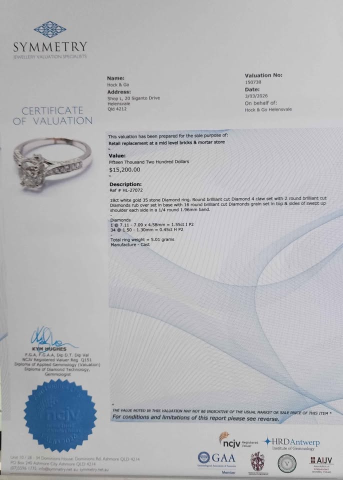 Valuated Total Estimated Replacement Value: $15,200.00 (Symmetry Jewellery Valuation Specialists, 3rd of March, 2026)